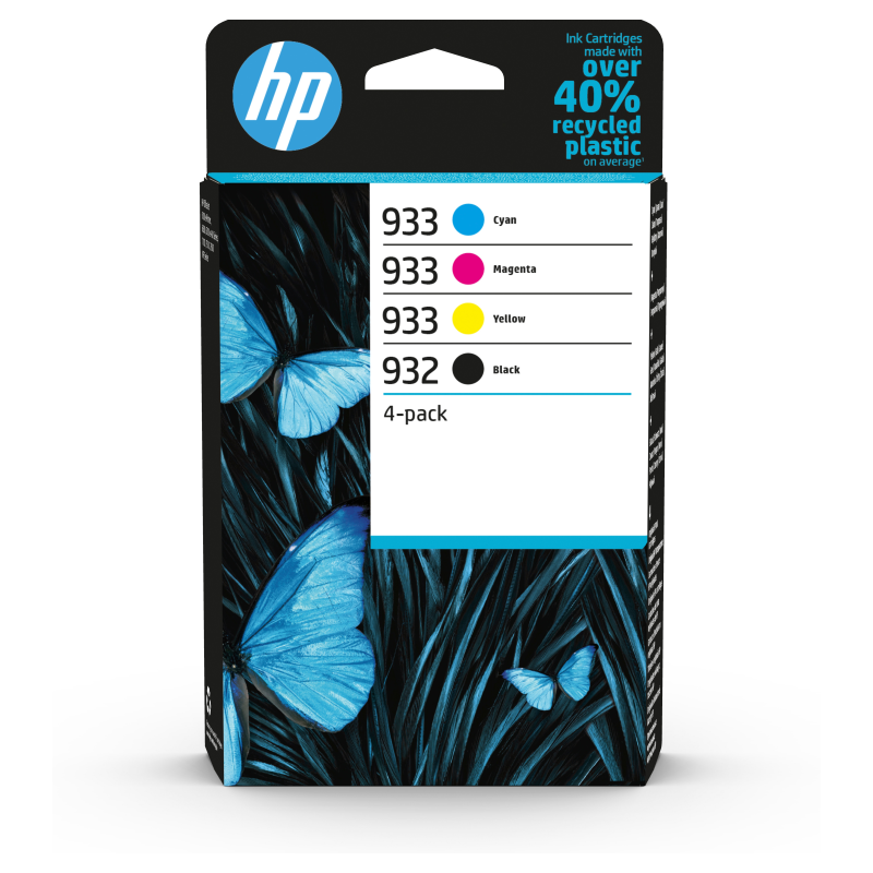 Una opción perfecta para los clientes de pequeñas empresas y de oficinas domésticas que imprimen con frecuencia, crean textos, gráficos e imágenes en color de alta calidad, y reciclan.Los paquetes de 4 cartuchos de tinta HP 932/933 ofrecen una impresión de calidad profesional en cada página. Presenta tus documentos y materiales de marketing con texto negro de calidad láser, y recicla con facilidad los cartuchos.