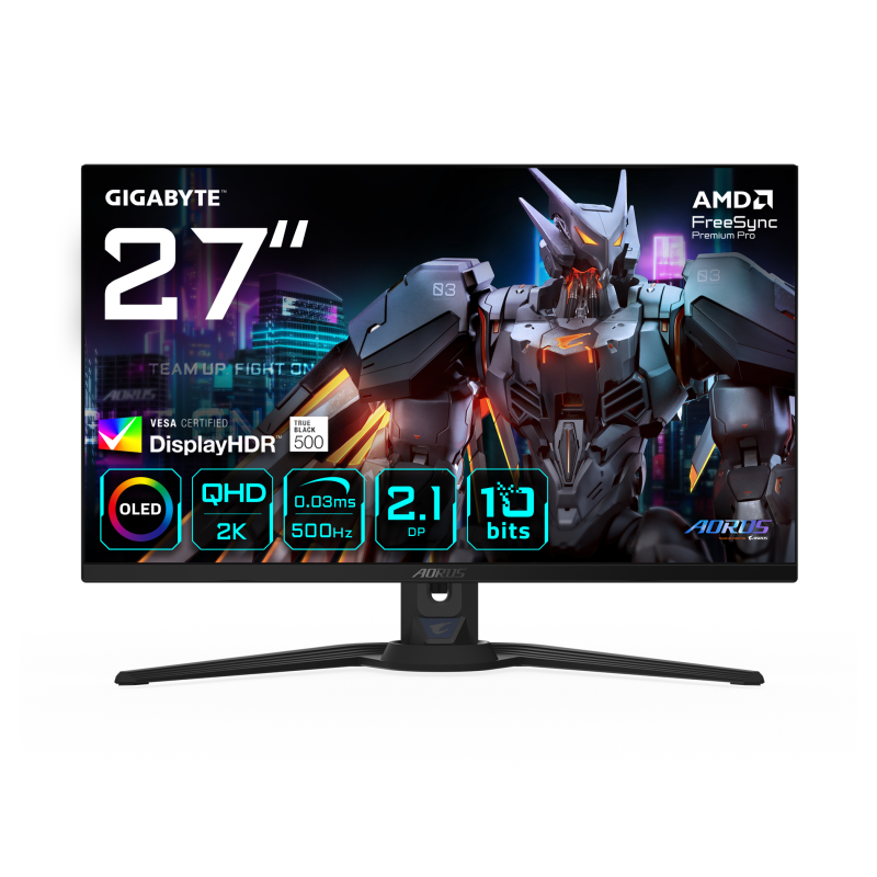 El monitor AORUS FO27Q5P OLED ofrece impresionantes visuales QHD con un contraste de 1.5M:1 y color de 10 bits. Con una tasa de refresco de 500Hz, un tiempo de respuesta de 0.03ms, tecnología AMD Freesync Pro y compatibilidad con G-SYNC, garantiza un juego fluido. Este monitor también incluye protección AI OLED, herramientas tácticas, diseño ergonómico, sistema de refrigeración y KVM integrado para control de múltiples dispositivos, perfecto para entusiastas de los videojuegos.