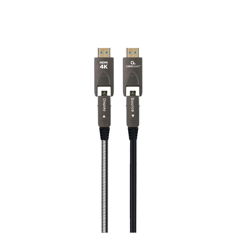 Cable HDMI AOC de alta velocidad blindado premium con Ethernet Admite resoluciones HDMI 2.0 4K UHD a 60 Hz El cable de fibra óptica es altamente resistente a interferencias EMI y RFI Forro de cable blindado extra fuerte Prácticos conectores compactos de metal HDMI-D a HDMI-A Conectores chapados en oro para una calidad de imagen perfecta Compatible con todos los dispositivos compatibles con HDMI