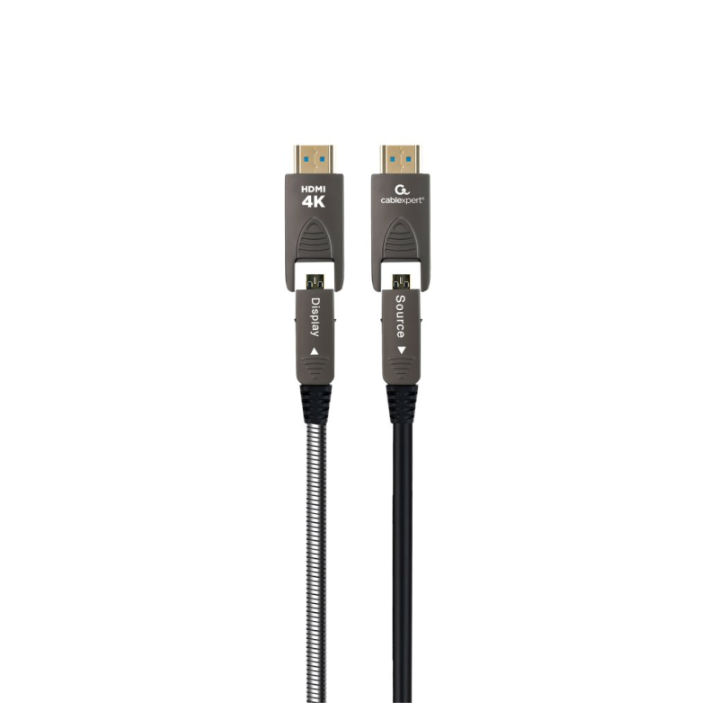 Cable HDMI AOC de alta velocidad blindado premium con Ethernet Admite resoluciones HDMI 2.0 4K UHD a 60 Hz El cable de fibra óptica es altamente resistente a interferencias EMI y RFI Forro de cable blindado extra fuerte Prácticos conectores compactos de metal HDMI-D a HDMI-A Conectores chapados en oro para una calidad de imagen perfecta Compatible con todos los dispositivos compatibles con HDMI