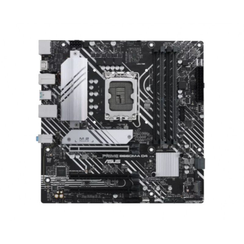 ASUS PRIME B660M-A D4-CSM. Fabricante de procesador: Intel, Socket de procesador: LGA 1700, Procesador compatible: Intel® Celeron®, Intel® Core? i3, Intel® Core? i5, Intel® Core? i7, Intel® Core? i9,.... tipos de memoria compatibles: DDR4-SDRAM, Memoria interna máxima: 128 GB, Tipo de ranuras de memoria: DIMM. Interfaces de disco de almacenamiento soportados: M.2, SATA III, Tipos de unidades de almacenamiento admitidas: HDD & SSD, Niveles RAID: 0, 1, 5, 10. Tipo de interfaz ethernet: Gigabit Ethernet. Componente para: PC, Factor de forma: micro ATX, Familia del chipset: Intel