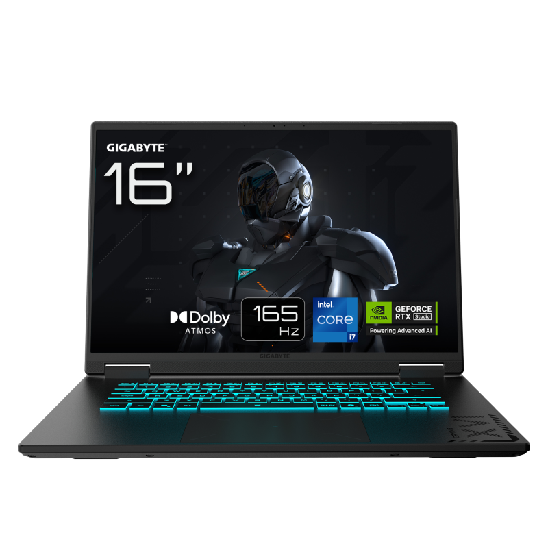 El portátil GIGABYTE GAMING A16 está impulsado por un procesador Intel H Series, GPUs para portátiles NVIDIA GeForce RTX 50 Series y una pantalla de alta frecuencia de actualización de 165Hz. Con su relación de aspecto amplia de 16:10 y una bisagra que se abre hasta 180°, este portátil apoya todas tus batallas e incluso tu vida cotidiana.