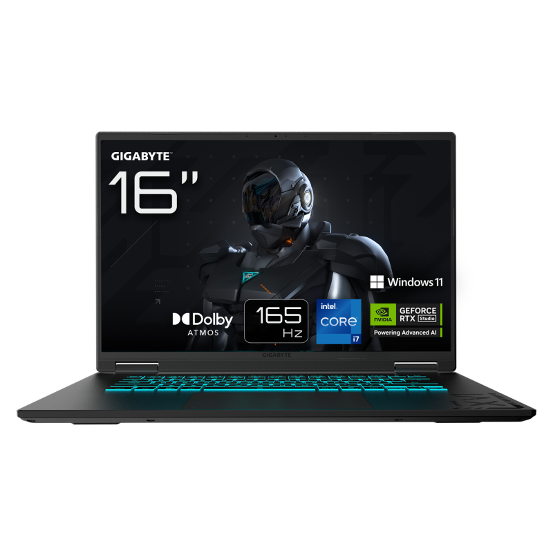 El portátil GIGABYTE GAMING A16 está impulsado por un procesador Intel H Series, GPUs para portátiles NVIDIA GeForce RTX 50 Series y una pantalla de alta frecuencia de actualización de 165Hz. Con su relación de aspecto amplia de 16:10 y una bisagra que se abre hasta 180°, este portátil apoya todas tus batallas e incluso tu vida cotidiana.