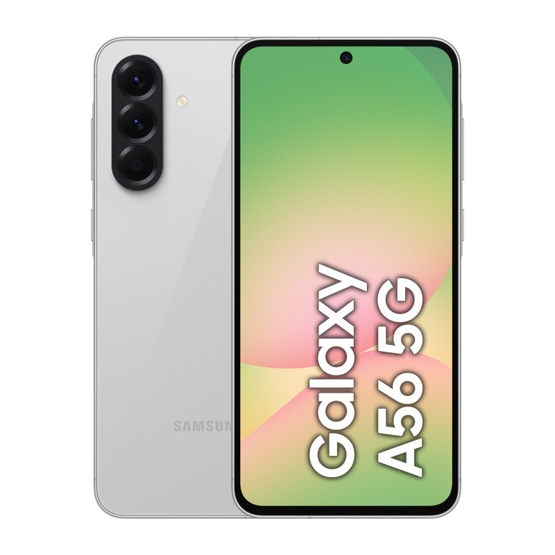 Nuevo look frescoPresentamos Galaxy A56 5G. Con un grosor de 7,4 mm y un peso de 198 g, el Galaxy A56 5G tiene un gran agarre. Las cámaras mejoradas están agrupadas para combinar con el nuevo diseño linear. Galaxy A56 5G tiene cuatro colores para elegir: Negro, Gris, Oliva y Rosa.Rodéalo, encuéntraloCircle to Search con Google está disponible en el Galaxy A56 5G. Tan solo rodea, subraya o pulsa un objeto o texto en la pantalla para conseguir resultados de Google Search.Convierte fotos en obras de arteObject Eraser elimina los elementos no deseados del fondo que serán reconocidos, eliminados y rellenados para conseguir una foto impecable.Filtros solo para tiCrea tus propios filtros o añade un efecto de película antigua a tus fotos y vídeos.Reels destacados fácilmenteCrea vídeos de calidad sin esfuerzos.Obtén fotos con todos sonriendoSelecciona las mejores caras de la gente en Motion Fotos para crear la foto de grupo perfecta.Captura memorias con gran detalleConsigue fotos y vídeos asombrosos con la mejorada cámara de 50 MP en Galaxy A56 5G. Identifica el cielo, piel, cara, pelo y hierba y mejora la calidad de imagen de manera instantánea para ti.Selfies más asombrososGraba increíbles vídeos de tus aventuras y de tu día a día en Super HDR. La cámara frontal del Galaxy A56 5G se ha mejorado para obtener colores y contraste óptimos para vídeos selfie de alta resolución.Graba noches más vivasLas cámaras del nuevo Galaxy A56 5G son ahora más avanzadas que antes, ya que absorben más luz para obtener fotografías de alta resolución con poco ruido con Nightography.Captura selfies más increíblesAhora, tus selfies se pueden compartir tal y como son. La cámara frontal mejorada de 12 MP del Galaxy A56 5G captura fotos vibrantes y sin desenfoque.Juega para ganar con un AP de nueva generaciónExperimenta el potente rendimiento del procesador Octa-core mejorado. Además, con un sistema de refrigeración mejorado y un almacenamiento de hasta 256 GB, podrás realizar varias tareas a la vez, hacer streaming y jugar con más fluidez que nunca.Pantalla para un juego inmersivoSumérgete por completo en tu contenido de entretenimiento favorito con una gran pantalla FHD+ Super AMOLED de 6,7 pulgadas. Los 1.200 nits de Vision Booster añaden claridad para una experiencia visual increíble, con cualquier iluminación.Batería de larga duración para ver vídeos todo el díaCon una batería de larga duración de 5.000 mAh (típica), podrás disfrutar de maratones de películas de hasta 29 horas sin tener que cargar tu Galaxy A56 5G.Fuerte durabilidadEl marco de metal sólido y Corning® Gorilla® Glass Victus®+ mantienen el impresionante diseño de Galaxy A56 5G. Además, con la protección IP67, la nueva serie Galaxy A está a salvo de la suciedad y las salpicaduras.