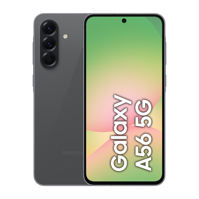 Nuevo look frescoPresentamos Galaxy A56 5G. Con un grosor de 7,4 mm y un peso de 198 g, el Galaxy A56 5G tiene un gran agarre. Las cámaras mejoradas están agrupadas para combinar con el nuevo diseño linear. Galaxy A56 5G tiene cuatro colores para elegir: Negro, Gris, Oliva y Rosa.Rodéalo, encuéntraloCircle to Search con Google está disponible en el Galaxy A56 5G. Tan solo rodea, subraya o pulsa un objeto o texto en la pantalla para conseguir resultados de Google Search.Convierte fotos en obras de arteObject Eraser elimina los elementos no deseados del fondo que serán reconocidos, eliminados y rellenados para conseguir una foto impecable.Filtros solo para tiCrea tus propios filtros o añade un efecto de película antigua a tus fotos y vídeosReels destacados fácilmenteCrea vídeos de calidad sin esfuerzos.Obtén fotos con todos sonriendoSelecciona las mejores caras de la gente en Motion Fotos para crear la foto de grupo perfecta.Captura memorias con gran detalleConsigue fotos y vídeos asombrosos con la mejorada cámara de 50 MP en Galaxy A56 5G. Identifica el cielo, piel, cara, pelo y hierba y mejora la calidad de imagen de manera instantánea para ti.Selfies más asombrososGraba increíbles vídeos de tus aventuras y de tu día a día en Super HDR. La cámara frontal del Galaxy A56 5G se ha mejorado para obtener colores y contraste óptimos para vídeos selfie de alta resolución.Graba noches más vivasLas cámaras del nuevo Galaxy A56 5G son ahora más avanzadas que antes, ya que absorben más luz para obtener fotografías de alta resolución con poco ruido con Nightography.Captura selfies más increíblesAhora, tus selfies se pueden compartir tal y como son. La cámara frontal mejorada de 12 MP del Galaxy A56 5G captura fotos vibrantes y sin desenfoque.Juega para ganar con un AP de nueva generaciónExperimenta el potente rendimiento del procesador Octa-core mejorado. Además, con un sistema de refrigeración mejorado y un almacenamiento de hasta 256 GB, podrás realizar varias tareas a la vez, hacer streaming y jugar con más fluidez que nunca.Pantalla para un juego inmersivoSumérgete por completo en tu contenido de entretenimiento favorito con una gran pantalla FHD+ Super AMOLED de 6,7 pulgadas. Los 1.200 nits de Vision Booster añaden claridad para una experiencia visual increíble, con cualquier iluminación.Batería de larga duración para ver vídeos todo el díaCon una batería de larga duración de 5.000 mAh (típica), podrás disfrutar de maratones de películas de hasta 29 horas sin tener que cargar tu Galaxy A56 5G.Fuerte durabilidadEl marco de metal sólido y Corning® Gorilla® Glass Victus®+ mantienen el impresionante diseño de Galaxy A56 5G. Además, con la protección IP67, la nueva serie Galaxy A está a salvo de la suciedad y las salpicaduras.Hecho para durar con 6x actualizaciones OSGalaxy A56 5G admite hasta 6 generaciones de actualizaciones del sistema operativo y hasta 6 años de actualizaciones de seguridad para que siga funcionando como nuevo.Mantén tu contraseña segura con Knox VaultMantén tu información privada sana y salva con Knox Vault con certificación EAL5+.Un nuevo One UI 7Con un nuevo aspecto intuitivo y una usabilidad mejorada, One UI 7 hace que Galaxy A56 5G sea fácil de usar.Comparte archivos en un instanteUsa Quick Share para enviar archivos fácilmente entre dispositivos dentro o fuera de Galaxy, incluidos iOS y PC.Cambia sin esfuerzo desde iOS¡Cambiar de iOS es muy fácil! Gracias a Smart Switch, podrás transferir tus fotos, vídeos, contactos y aplicaciones sin esfuerzo.