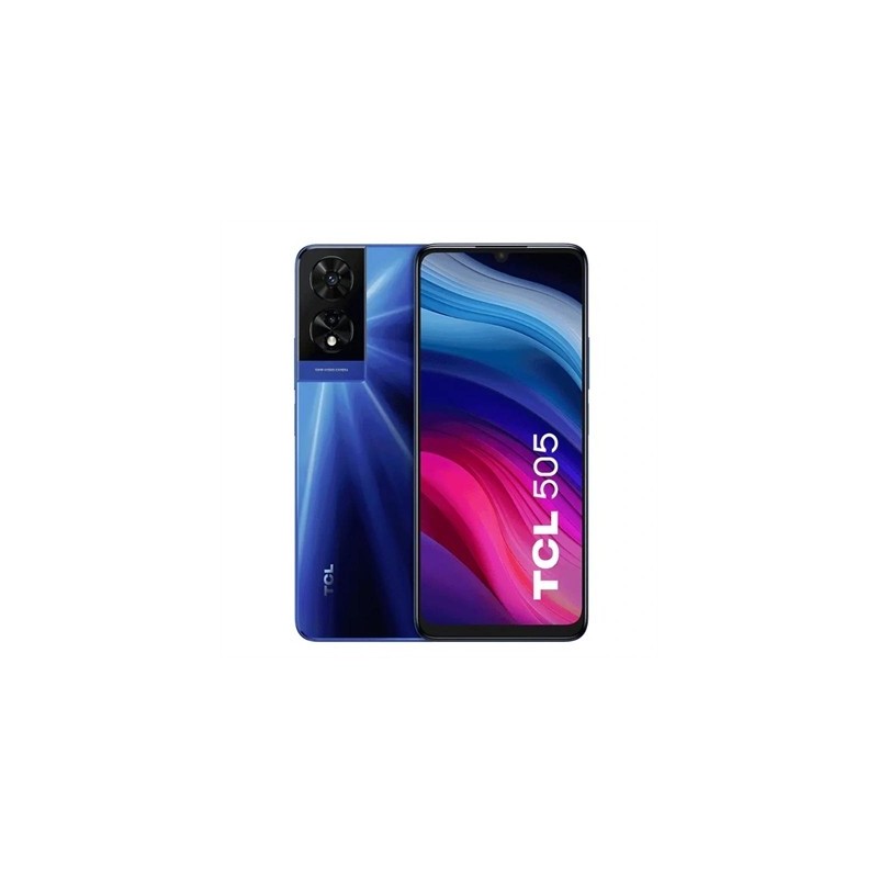 TCL 505. Diagonal de la pantalla: 17,1 cm (6.75"), Resolución de la pantalla: 720 x 1600 Pixeles. Frecuencia del procesador: 2,2 GHz, Familia de procesador: MediaTek, Modelo del procesador: Helio G36. Capacidad de RAM: 4 GB, Capacidad de almacenamiento interno: 128 GB. Resolución de la cámara trasera (numérica): 50 MP, Tipo de cámara trasera: Cámara doble. Capacidad de la tarjeta SIM: SIM doble. Sistema operativo instalado: Android 14. Capacidad de batería: 5010 mAh. Color del producto: Azul. Peso: 190 g
