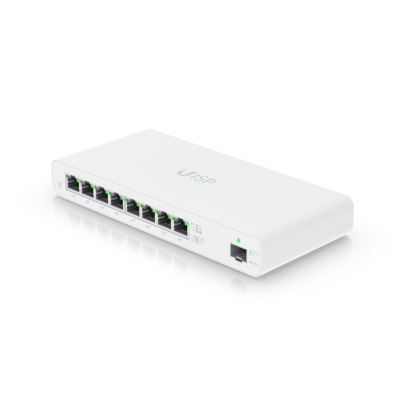 Ubiquiti UISP. Tipo de interruptor: Gestionado, Capa del interruptor: L2. Puertos tipo básico de conmutación RJ-45 Ethernet: Gigabit Ethernet (10/100/1000), Cantidad de puertos básicos de conmutación RJ-45 Ethernet: 8. Voltaje de entrada DC: 20 - 28 V. Conector eléctrico: Toma de entrada de CC. Energía sobre Ethernet (PoE)
