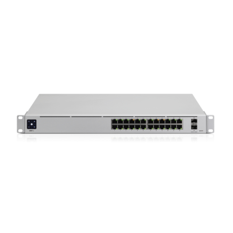 Ubiquiti UniFi USW-PRO-24. Tipo de interruptor: Gestionado, Capa del interruptor: L2/L3. Puertos tipo básico de conmutación RJ-45 Ethernet: Gigabit Ethernet (10/100/1000), Cantidad de puertos básicos de conmutación RJ-45 Ethernet: 24. Montaje en rack