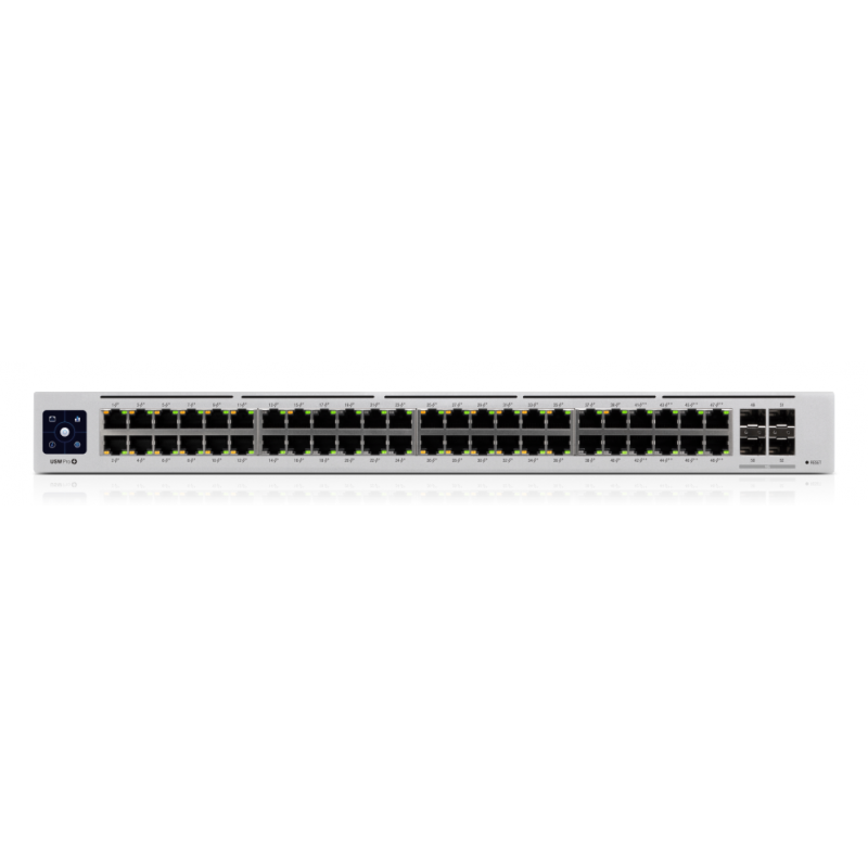 Ubiquiti UniFi Pro 48-Port PoE. Tipo de interruptor: Gestionado, Capa del interruptor: L2/L3. Puertos tipo básico de conmutación RJ-45 Ethernet: Gigabit Ethernet (10/100/1000), Cantidad de puertos básicos de conmutación RJ-45 Ethernet: 48. Bidireccional completo (Full duplex). Capacidad de conmutación: 176 Gbit/s. Estándares de red: IEEE 802.3af, IEEE 802.3at. Voltaje de entrada DC: 44 - 57 V. Energía sobre Ethernet (PoE). Montaje en rack, Factor de forma: 1U