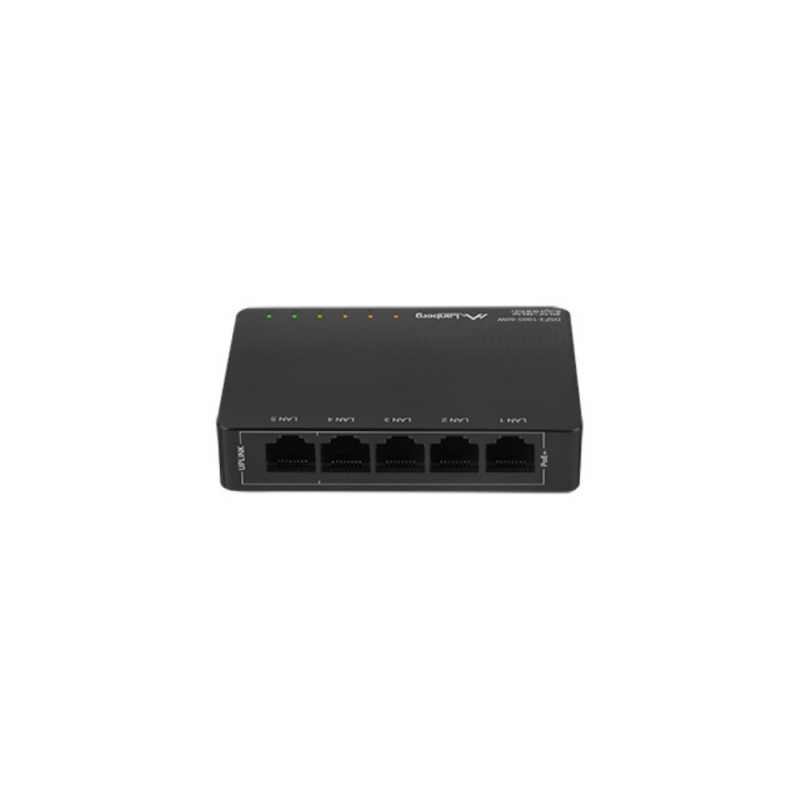 Lanberg DSP3-1005-60W. Tipo de interruptor: No administrado. Puertos tipo básico de conmutación RJ-45 Ethernet: Gigabit Ethernet (10/100/1000), Cantidad de puertos básicos de conmutación RJ-45 Ethernet: 5. Bidireccional completo (Full duplex). Tabla de direcciones MAC: 2000 entradas, Capacidad de conmutación: 10 Gbit/s. Estándares de red: IEEE 802.3ab, IEEE 802.3af, IEEE 802.3at, IEEE 802.3i, IEEE 802.3u, IEEE 802.3x. Voltaje de entrada DC: 53 V. Energía sobre Ethernet (PoE). Montaje de pared