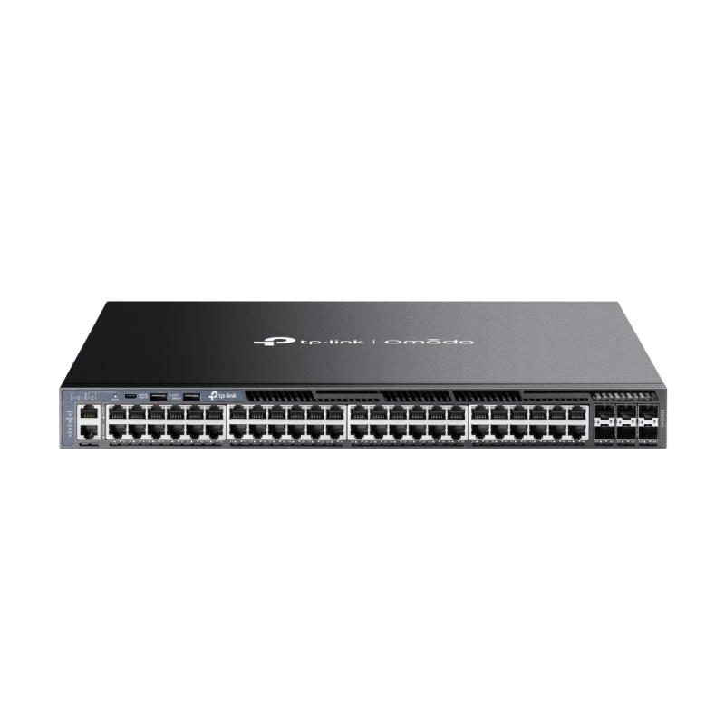 TP-Link Omada SG6654X. Tipo de interruptor: Gestionado, Capa del interruptor: L3. Puertos tipo básico de conmutación RJ-45 Ethernet: Gigabit Ethernet (10/100/1000), Cantidad de puertos básicos de conmutación RJ-45 Ethernet: 48, Cantidad de puertos USB 2.0: 2, Puerto de consola: RJ-45/USB Type-C. Tabla de direcciones MAC: 32000 entradas, Capacidad de conmutación: 216 Gbit/s. Estándares de red: IEEE 802.1Q, IEEE 802.1p, IEEE 802.3x. Montaje en rack, Factor de forma: 1U