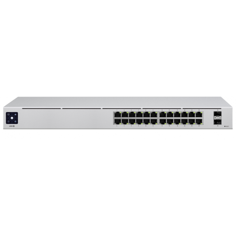 Ubiquiti UniFi USW-24. Tipo de interruptor: Gestionado, Capa del interruptor: L2. Puertos tipo básico de conmutación RJ-45 Ethernet: Gigabit Ethernet (10/100/1000), Cantidad de puertos básicos de conmutación RJ-45 Ethernet: 24. Estándares de red: IEEE 802.3af, IEEE 802.3at. Conector eléctrico: Conector de alimentación AC-in. Montaje en rack