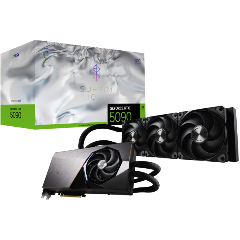 MSI SUPRIM GEFORCE RTX 5090 32G LIQUID SOC. Familia de procesadores de gráficos: NVIDIA, Procesador gráfico: GeForce RTX 5090. Capacidad memoria de adaptador gráfico: 32 GB, Tipo de memoria de adaptador gráfico: GDDR7, Ancho de datos: 512 bit. Máxima resolución: 7680 x 4320 Pixeles. Versión DirectX: 12 Ultimate, Versión OpenGL: 4.6. Tipo de interfaz: PCI Express x16 5.0. Tipo de enfriamiento: Activo, Número de ventiladores: 3 Ventilador(es)