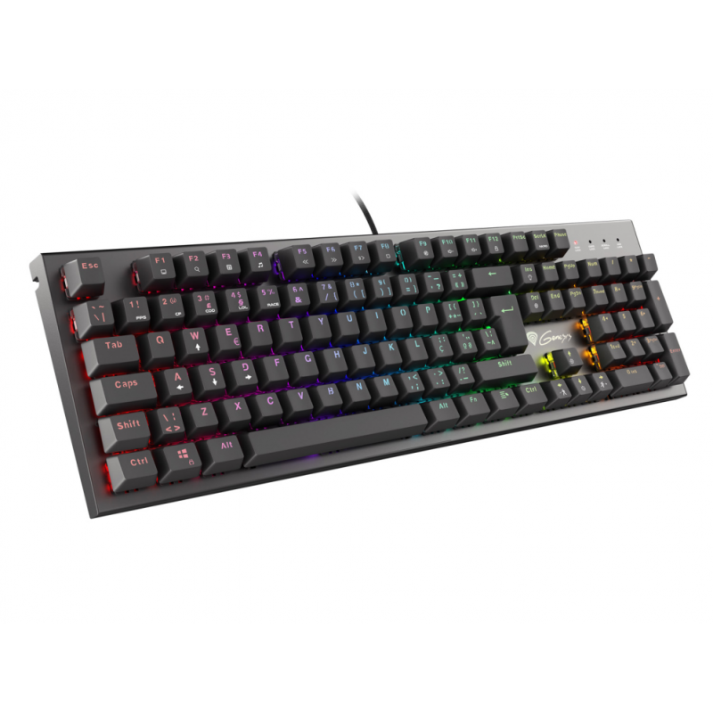 GENESIS THOR 300. Formato del teclado: Completo (100%). Estilo de teclado: Derecho. Tecnología de conectividad: Alámbrico, Interfaz del dispositivo: USB, Interruptor del teclado: Interruptor mecánico, Diseño de teclado: QWERTY, Teclado, cantidad de teclas: 104. Tipo de retroiluminación: LED RGB. Longitud de cable: 1,6 m. Uso recomendado: Juego. Color del producto: Negro