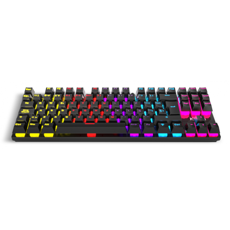 Kasic TKLKrom Kasic TKL es un teclado mecánico con formato TKL que tiene iluminación RGB y switches rojos de excelente calidad. Con tecnología anti-ghosting en 25 de sus teclas y bloqueo de la tecla Windows, este teclado es un buen aliado para los amantes de los teclados compactos.Teclado mecánico con switches redCon un tamaño reducido, Krom Kasic TKL cuenta con un formato que se adapta a cualquier setup. Sus switches de alta calidad ofrecen un buen rendimiento para que puedas disfrutar de tus juegos favoritos.Para que no tengas que preocuparte de pulsar la tecla Windows y abandonar la partida sin querer, este teclado mecánico de Krom permite jugar en ?Modo Juego?, bloqueando dicha tecla. Además, posibilita intercambiar las teclas WASD y las de dirección.Por otro lado, gracias al sistema anti-ghosting que incluye en 25 de sus teclas, podrás pulsar varias de manera simultánea para ejecutar cualquier acción sin miedo a que el teclado no registre tus órdenes. Con Krom Kasic TKL serás más competitivo.Calidad superiorKrom Kasic TKL es un teclado muy compacto, pero también ultraligero, que ha sido diseñado con materiales de calidad, con unas teclas suaves al tacto y cómodas de pulsar, que responden de un modo eficaz.El cable con el que cuenta este teclado mecánico es de 150 cm de longitud, lo que te permitirá jugar con total libertad.El teclado Krom Kasic TKL es compatible con Windows 7/8/10: podrás jugar, pero también utilizarlo para estudiar o trabajar con fluidez.Iluminación para cada partidaKrom Kasic TKL cuenta con iluminación RGB y efecto Rainbow que recorre todas las teclas, así como distintos modos de iluminación. Podrás contar con iluminación en cada juego, visualizando las teclas perfectamente en la oscuridad de las partidas nocturnas.- 12 teclas multimedia- Teclado mecánico con interruptores de alta calidad, capacidad de hasta 25 teclas anti-ghosting y retroiluminación RGB Rainbow- Teclas WASD y de dirección intercambiables- Modo de juego: desactiva la tecla Windows