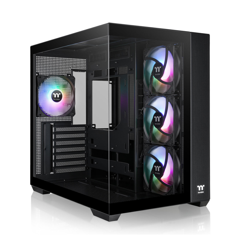 Thermaltake View 380 TG ARGB. Factor de forma: Midi Tower, Tipo: PC, Color del producto: Negro. Ubicación de fuente de alimentación: Lado, Factores de forma de la fuente de alimentación compatibles: PS2. Ventiladores laterales instalados: 3x 120 mm, Diámetro de ventiladores secundarios soportados: 120,140 mm, Ventiladores traseros instalados: 1x 120 mm. Tamaños de disco duro soportados: 2.5,3.5". Ancho: 285 mm, Profundidad: 442 mm, Altura: 410 mm