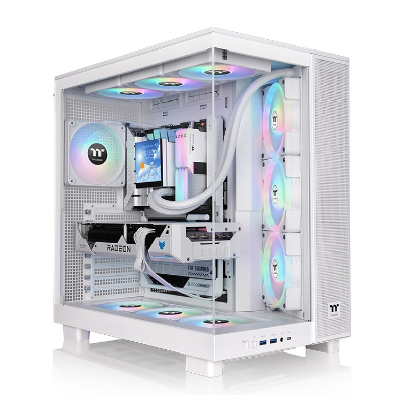 Thermaltake View 380 XL TG ARGB. Factor de forma: Midi Tower, Tipo: PC, Color del producto: Blanco. Factores de forma de la fuente de alimentación compatibles: PS2. Ventiladores laterales instalados: 3x 120 mm, Diámetro de ventiladores secundarios soportados: 120 mm, Ventiladores traseros instalados: 1x 120 mm. Tamaños de disco duro soportados: 3.5", Factor de forma de disco SSD: 2.5". Ancho: 288 mm, Profundidad: 469 mm, Altura: 471 mm